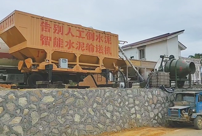 福建省三明市大田縣桃源鎮(zhèn)桃源里風景旅游區(qū)。古河水泥輸送機配合翻斗式攪拌機進行輸送水泥的任務。高低差形成施工絕佳地形,運送混凝土的車正好在下方接收混凝土,施工效率倍增!