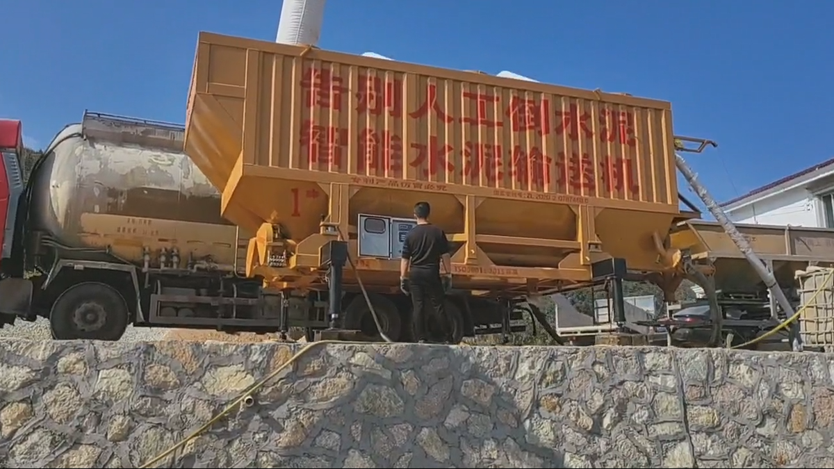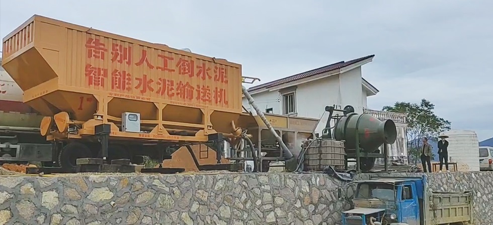 古河水泥輸送機(jī)配合翻斗式攪拌機(jī)進(jìn)行輸送水泥的任務(wù)。