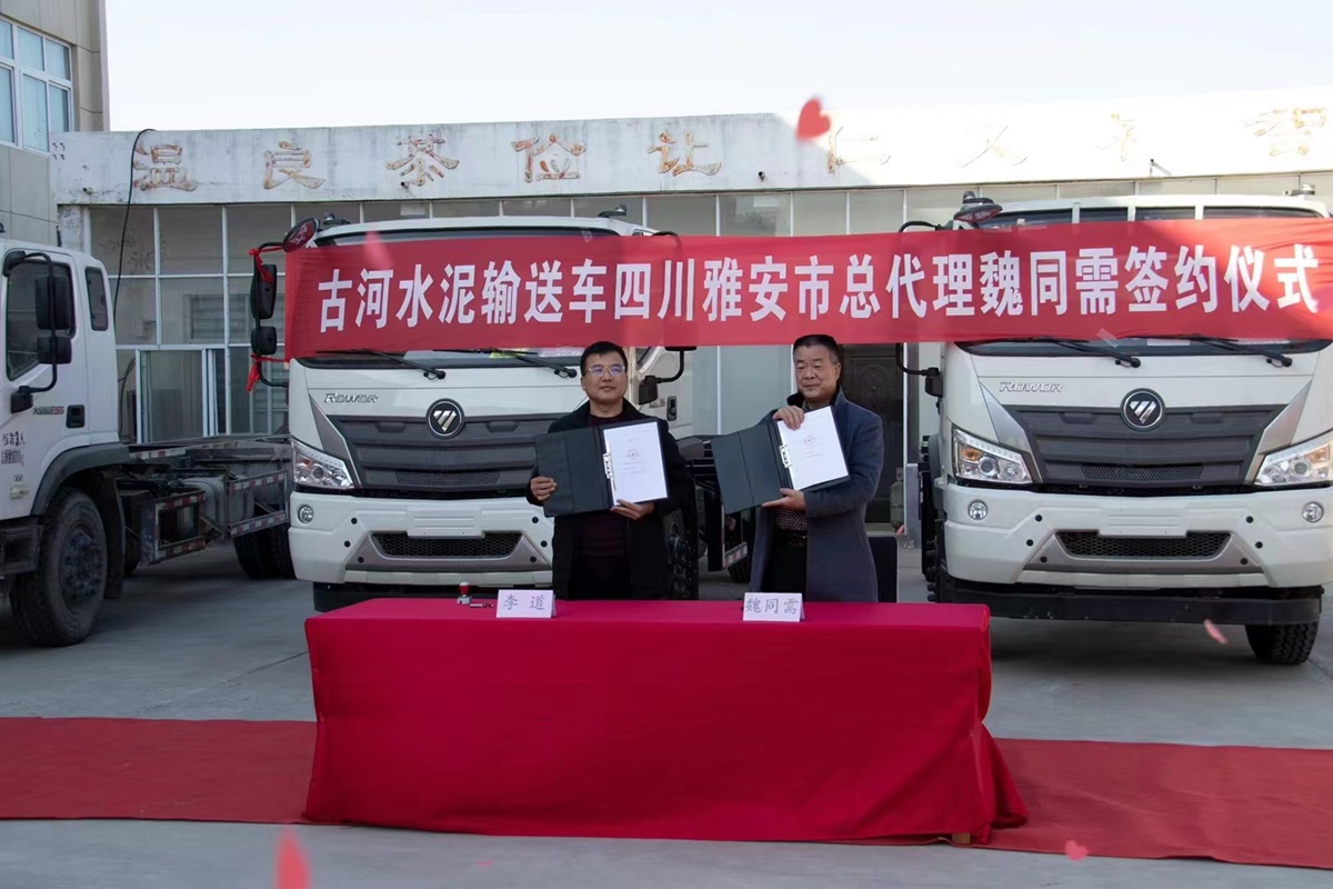 祝賀古河水泥輸送車青海西寧市總代理尹總簽約成功!
