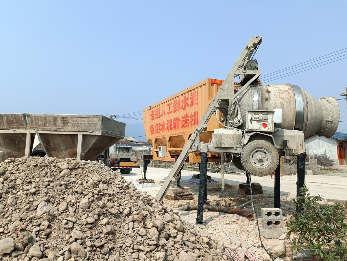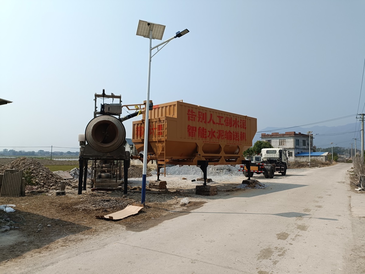 如今用了古河水泥輸送機配合施工,解決了一直困擾他的人工倒水泥問題。